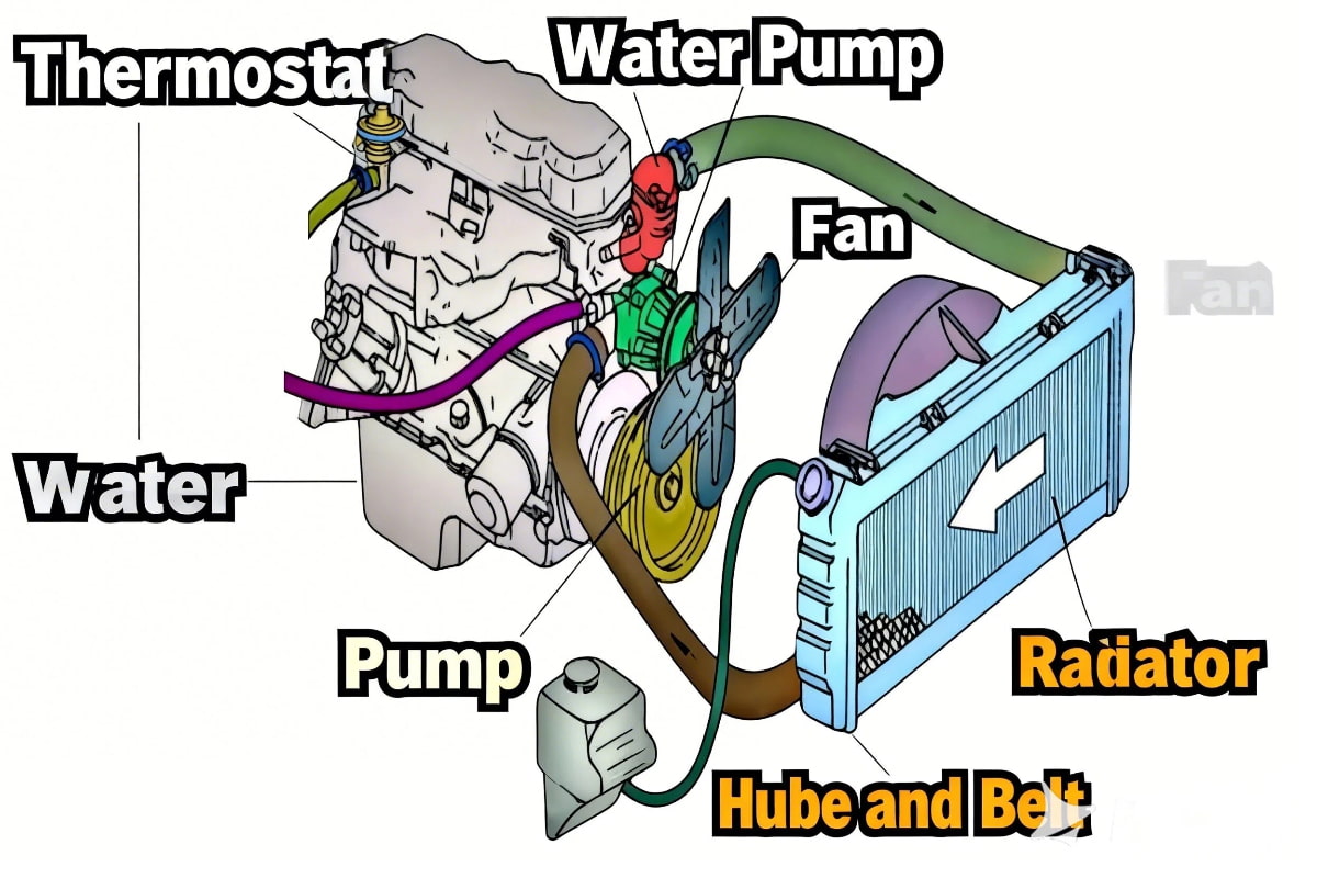 (1) Soğutma Sistemi Bileşenleri: Termostat, soğutucu sirkülasyon yolunu kontrol eder (hızlı ısınma için küçük devre, gelişmiş ısı dağılımı için büyük devre); su pompası, radyatör ve fan, soğutucu akış verimliliğini ve ısı dağıtım kapasitesini sağlar.